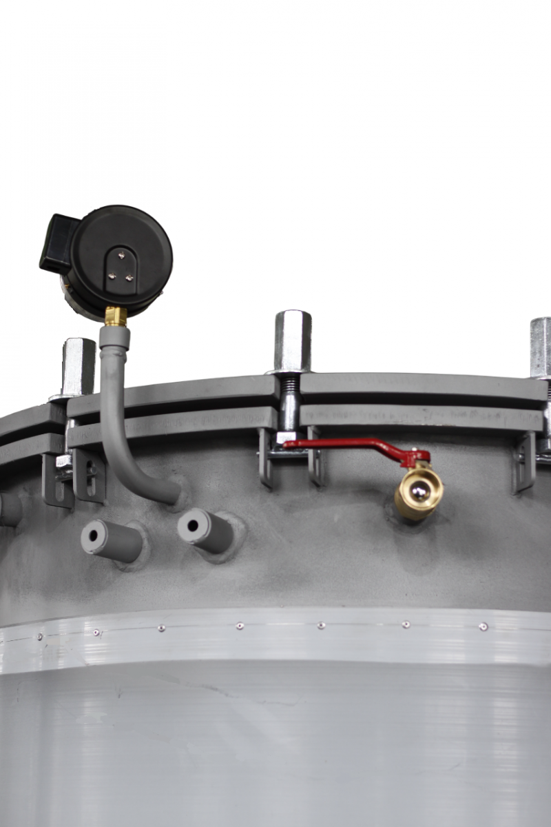 - по жестяным банкам No 22 – 1360 шт., No 9 – 680 шт., No 8 – 690 шт., No 6 – 896 шт., No 3 – 880 шт.Нагрев обеспечивается подачей пара от внешнего источника во встроенный теплообменник (гофрированный змеевик D28) непосредственно в корпус автоклава. После завершения процесса стерилизации через змеевик, который расположен концентрично корпусу автоклава, прокачивается холодная вода, принудительно охлаждающая его внутренний объем без необходимости слива из него воды. Охлаждение проводится в автоматическом режиме. Время охлаждения с 120С до 80С составляет 8минут, с 120С до 40С - 16 минут.