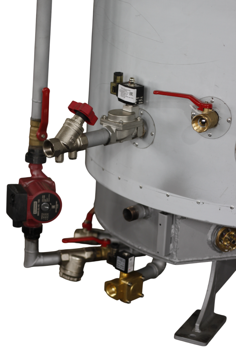 Электрический нагрев обеспечивается блочными ТЭНами. После завершения процесса стерилизации через змеевик, который расположен концентрично корпусу автоклава, прокачивается холодная вода, принудительно охлаждающая его внутренний объем без необходимости слива из него воды. Все автоклавы серии ЗС-24 снабжены нержавеющими эффективными гофрированными змеевиками D28, предназначенными для охлаждения воды в корпусе автоклава. Охлаждение может проводиться в автоматическом или не автоматическом режиме. Время охлаждения с 120С до 80С составляет 8минут, с 120С до 40С - 16 минут.